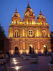 Wangfujing (Chinese: 王府井; pinyin: Wángfǔjǐng; lit. 'Prince's Mansion Well') is a shopping street in Beijing, China, located in Dongcheng District. The majority of the main area is pedestrianised. Since the middle of the Ming Dynasty there have been commercial activities in the area. In the Qing Dynasty, ten aristocratic estates and princess residence were built here, soon after when a well full of sweet water was discovered, thereby giving the street its name "Wang Fu" (princely residence), "Jing" (well). Many exotic foods are served on Wangfujing snack street.[1]
