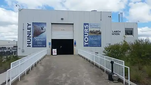 The Warren Lasch Conservation Center is a building located at 1250 Supply Street at the former Charleston Navy Yard, in North Charleston, South Carolina. Part of the Clemson Restoration Institute, the center is most notably being used to excavate, examine, and preserve the submarine H. L. Hunley. In recent years, the center has expanded research into various metal and architectural conservation topics. The namesake of the building is Warren F. Lasch, who was chairman of Friends of the Hunley during the Hunley's recovery.