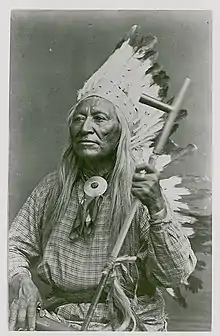 Washakie (c.1804[1]/1810 February 20, 1900) was a prominent leader of the Shoshone people during the mid-19th century. He was first mentioned in 1840 in the written record of the American fur trapper, Osborne Russell. In 1851, at the urging of trapper Jim Bridger, Washakie led a band of Shoshones to the council meetings of the Treaty of Fort Laramie. Essentially from that time until his death, he was considered the head of the Eastern Shoshones by the representatives of the United States government.[1] In 1979, he was inducted into the Hall of Great Westerners of the National Cowboy & Western Heritage Museum.[2]