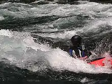 The Watauga River also has a section of Class IV-V whitewater popular with expert kayakers, upstream of Watauga Lake and across the state line in North Carolina.[16] This section requires significant rainfall to bring it up to runnable levels. It features continuous steep boulder bed rapids dropping up to 150 feet per mile (28 m/km), and several falls and ledges only runnable by expert paddlers.