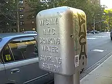 In the United States, water sampling stations aid in public infrastructural safety in regards to water quality monitoring and help municipalities comply with federal and state drinking water regulations. New York City has 965 sampling stations that are distributed based on population density, water pressure zones, proximity to water mains and accessibility. The stations rise about 4½ feet above the ground and are made of heavy cast iron. Using these stations, the New York City Department of Environmental Protection (DEP) collects more than 1,200 water samples per month from up to 546 locations.[1][2][3]