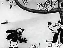![]() A squirrel steals the egg that Oswald and the bear were frying. | |