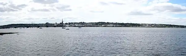 Wexford (Irish: Loch Garman)[2] is the county town of County Wexford, Ireland. Wexford lies on the south side of Wexford Harbour, the estuary of the River Slaney near the southeastern corner of the island of Ireland. The town is linked to Dublin by the M11/N11 National Primary Route; and to Rosslare Europort, Cork and Waterford by the N25. The national rail network connects it to Dublin and Rosslare Europort. It had a population of 21,524 according to the 2022 census.[1]