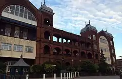 In 1889 the West Ham Board of Guardians purchased Forest House with 44 acres (18 ha) of grounds at Whipps Cross in Leytonstone, with the intention of building a workhouse.[1] Construction of an infirmary for the workhouse started in 1900 and was completed in 1903.[2] Designed by Francis Sturdy, the former main entrance is in the style of a northern Renaissance town hall.[3] When it opened the infirmary provided 672 beds in 24 wards in four awe-inspiring symmetrical blocks with tiered covered walkways and two massive towers. The site and buildings cost £250,000 in total.[4]