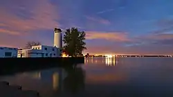 Whiskey Island is a peninsula at the mouth of the Cuyahoga River at Lake Erie in Cleveland, Ohio. Its current configuration was created in 1827 when the river's mouth was moved to its present location.[1] Part of the city's Cuyahoga Valley neighborhood, the peninsula is 1 mile (1.6 km) long and 0.3 miles (0.48 km) at its widest, bounded by Lake Erie to the north, West 54th Street on the west (roughly), and the Cuyahoga River to the south and east.[2]
