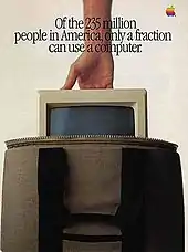 A "Macintosh Introduction" 18-page brochure was included with various magazines in December 1983, often remembered because Bill Gates was featured on page 11.[1] For a special post-election edition of Newsweek in November 1984, Apple spent more than $2.5 million to buy all of the advertising pages in the issue (a total of 39).[2]
