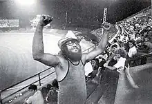 Hagy is said to symbolize the term "Orioles Magic" as his cheers sometimes led to comeback victories for the Orioles.[3][4] Eventually the team recognized his enthusiasm and let him do his Orioles cheers from atop the dugout.[1] Hagy's fame led him to meet Presidents such as Jimmy Carter and Ronald Reagan, and to get writeups in The New York Times.[4][5]