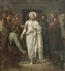 To his contemporaries and a further few generations, Marstrand ranked among Denmark's great painters of all time,[2] to some authorities perhaps as the very greatest.[3] Certainly, he was vastly productive and mastered a remarkable variety of genres – his disinterest for landscape art being a notable exception. More relevant today is the rather striking number of his works which are now familiar signposts of Danish history and culture: scenes from drawing-rooms and streets of Copenhagen during his younger days; the festivity and public life captured in Rome; the many representative portraits of citizens and innovators; even the monumentalist commissions for university and monarchy. Still, as the 20th century progressed, his work had become less valued artistically and downright unfashionable; conversely, recent decades seem to have afforded new appreciation.[4][5]