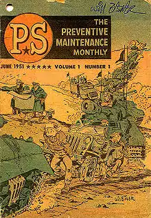 One of his longest-running jobs was PS, The Preventive Maintenance Monthly, a digest sized magazine with comic book elements that he started for the Army in 1951 and continued to work on until the 1970s with Klaus Nordling, Mike Ploog, and other artists. In addition, Eisner produced other military publications such as the graphic manual in 1969, The M-16A1 Rifle: Operation and Preventative Maintenance, which was distributed along with cleaning kits to address serious reliability concerns with the M16 Rifle during the Vietnam War.[37]