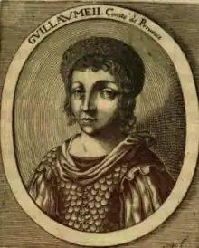 William was the son of William I (or II) of Provence and Adelaide-Blanche of Anjou, who were married by January 984.[1] William appears in the documents of his father from 992,[2] and succeeded the elder William on the latter's retirement to a monastery just before his death in 994,[3] but as a minor he fell under the control of his paternal uncle, Rotbold I, who would intervene with William and his mother, Adelaide, until Rotbold's death in 1008.[2][lower-alpha 1] William did not succeed to the margravial title, which went to Rotbold.[3]