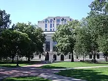 His extensive service at Ohio State University (26 years) is honored with a larger-than-life bronze statue by Erwin Frey[4] of President Thompson in academic dress, positioned in front of the eponymous William Oxley Thompson Memorial Library on "The Oval" (the central green space on the Ohio State University campus). He is known for being involved in students education and social lives, presiding over the Ohio State win over Oxford University on October 10, 1924 in intercollegiate debate. Thompson's tenure at Ohio State was marked by two seminal events. The first occurred in 1906 with the passage by the Ohio Legislature of the Eagleson Bill, which formalized and legally locked in Ohio State's flagship role in the state's public system of higher education. The Eagleson law mandated that only Ohio State, among Ohio's public universities, would be allowed to offer doctoral education or conduct basic research. The second event, and the culmination of both the raison d'être for Ohio State's founding in 1870 and the aim of the Eagleson Bill in 1906, occurred in 1916 with Ohio State's election into the Association of American Universities. Thompson also served as President of the University during World War One, which saw a massive drop in student attendance for 1917-1918 as many left to join the military or other war-related activities.