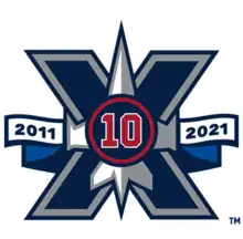 Even though the current Jets are not historically connected with the original franchise now known as the Arizona Coyotes, the team continued to pay tribute to its original incarnation on a few occasions. From 2016 to 2019, the Jets wore throwback white uniforms based on the 1973–78 design worn by the original Jets. The uniforms made its debut in the 2016 Heritage Classic and have been used during Jets Hall of Fame induction nights since.[61] A blue version of the throwback uniforms was later unveiled, this time for the 2019 Heritage Classic.[62] For the 2020–21 season, the Jets wore "Reverse Retro" alternate uniforms, recreating the original Jets' 1979–90 uniforms but recoloured to match the current Jets' scheme.[63] In addition, the current Jets' 10th-anniversary logo in 2021 also served as a memorial logo to Dale Hawerchuk, whose no. 10 (in the original Jets' number and colour style) was added in lieu of the team's current logo following his death on August 18, 2020.[64] Starting with the 2021–22 season, the Jets' blue "Heritage" uniforms were promoted to alternate status, replacing the previous aviator blue alternates.[65] In the 2022–23 season, the Jets wore "Reverse Retro" uniforms based on the white uniforms worn by the original Jets from 1990 to 1996, again recoloured to the current Jets' scheme.[66]