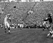 Continuing under the direction of Bruhn in 1962, the Badgers had another landmark season, spearheaded by the passing combination of Ron Vander Kelen to All-American Pat Richter. The Badgers standout victory was an upset of No. 1-ranked Northwestern, who were coached then by the legendary Ara Parseghian. The Badgers finished 8–1, earned their eighth Big Ten title, and faced the top-ranked USC Trojans in the Rose Bowl. Despite a narrow 42–37 defeat, the Badgers still ended the season ranked No. 2 in both the AP and Coaches polls (post-bowl rankings were not introduced until later in the decade).