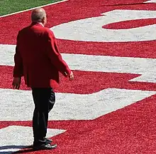Andersen departed Wisconsin four days later, taking the vacant head coaching position at Oregon State.[9] Andersen cited family as his rationale for taking the Oregon State position; however, it was reported by some media outlets, such as Fox Sports and Sports Illustrated, that Andersen was frustrated with the university's high academic standards for athletes.[10][11] Those reports turned out to be accurate, and were confirmed by Andersen in January 2015.[12] Andersen had to pay a $3 million buyout for departing within the first two years of his contract, which was set through January 2019.[13] At the request of the teams' seniors, Barry Alvarez named himself interim coach for the 2015 Outback Bowl vs. Auburn on January 1, 2015.[14] Wisconsin won the game 34–31 in overtime.[15] Gary Andersen finished his coaching career at Wisconsin with a 19–7 record a 73 percent winning percentage with one Big Ten west division title.