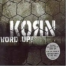 "Word Up!" by American nu metal band Korn is a cover of the Cameo song. Its musical arrangements are similar to that of the cover version by Gun, except it is played in a lower sounding 7 string guitar tuning instead of the standard E. "Word Up!" was the first track featured on Korn's 2004 retrospective album, Greatest Hits, Volume 1, and was one of two new tracks along with Pink Floyd's "Another Brick in the Wall" that was exclusive to the album (the "Word Up!" CD single also featured a live performance of the latter).