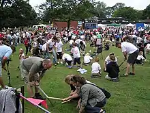 Also known as the International Festival of Worm Charming, this event takes place in the small village of Blackawton, South Devon, during the early May Bank Holiday. It has been running since 1984 and is accompanied by a Real Ale Beer Festival and other activities. The genesis of the event occurred in 1983, when Dave Kelland after returning home from drinking at The Normandy Arms relieved himself in a field and was surprised to see worms come to the surface giving him inspiration for the competition.[15] The event has been held at The Normandy Arms ever since. Unlike the World Worm Charming Championships at Cheshire, "forking" the ground is not allowed however the use of water is.[16]