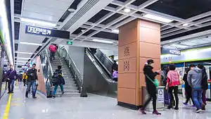 Yangang Station (Chinese: 燕岗站), formerly Jiangyan Lu Station (江燕路站),[1][2] is a station on Guangfo Line.[3] It is located under Gongye Avenue (工业大道) in the Haizhu District of Guangzhou.[4] It entered operation on December 28, 2015.[5]