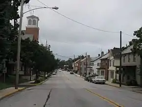 York Springs was platted as Petersburg[4] within Latimore Township. York Sulphur Springs, the first summer resort in Adams County, was patronized by people from Philadelphia and Baltimore who came to the resort by stage coach. General George Washington and his wife Martha visited the area in the summer of 1799.[4] The water was regarded as medicinal but unpalatable. Analysis claimed 20 parts Epsom salts, 6 parts gypsum, 4 parts common salt, and the balance sulfur. The hotel was destroyed by fire on January 8, 1896. The Springs' popularity decreased with the construction of the railroad and the resort buildings disappeared.[5]