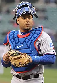 In 2011, he batted .273 with 7 home runs.[13] On defense, he was third in the league in errors by a catcher, totalling 9 errors.[13] Torrealba led the Rangers into the postseason until the team lost the 2011 World Series against the St. Louis Cardinals.