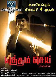 Yuddham Sei (transl. Wage War) is a 2011 Indian Tamil-language neo-noir mystery thriller film written and directed by Mysskin.[1] It stars Cheran and debutant Dipa Shah alongside an ensemble cast including Y. G. Mahendra, Lakshmi Ramakrishnan, Jayaprakash, and Selva in supporting roles. The film was released on 4 February 2011 which was partly inspired by Harlan Coben novel The Innocent and was remade in Kannada as Gharshane in 2014.