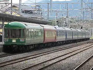 ![]() Yume Kūkan coaches at the rear of a sleeping car service in October 2007 | |
