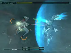 The game is set in the year 2174, two years after the events of Zone of the Enders. It follows Dingo Egret, a miner working on Callisto. He inadvertently discovers the Orbital Frame, Jehuty, hidden. When he is attacked by BAHRAM forces who have come to seize it, Dingo climbs into Jehuty and engages the attackers, which include a female Orbital Frame runner named Ken Marinaris.[7] During the battle, Dingo enters the BAHRAM battleship, seemingly defeating Nephtis, an Orbital Frame controlled by an AI program based on Viola's fighting style, but is subdued by Anubis, Jehuty's superior counterpart controlled by Col. Ridley "Nohman" Hardiman, leader of BAHRAM.[8][9] Nohman requests Dingo to join him once again.[10] When Dingo refuses as his comrades were sacrificed by Nohman years ago, Nohman shoots him and leaves him to die.[11]