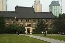 The university became the capital national university after Nanking was made the capital by Nationalist Government, initially renamed National Dyisyi Chungshan University (or called National Nanking Chungshan University) in June 1927 when National Southeastern University merged eight public schools in Jiangsu province, and was renamed Jiangsu University in February 1928, and in May 1928, it was renamed National Central University (國立中央大學).[7] At the time there were eight colleges (or schools): Humanity, Social Science, Natural Science, Engineering, Education, Commerce, Agriculture, and Medicine. The College of Commerce moved to Shanghai in 1921 and College of Medicine established in Shanghai in 1927 were split from the university in 1932.[Note 3] In 1935 College of Medicine was again established, in Nanjing. During the Anti-Japanese War between 1937 and 1945, the university moved to Chongqing, while the College of Medicine and Department of Animal Husbandry & Veterinary Medicine of College of Agriculture moved to Chengdu. The Chinese Association of Natural Science (中華自然科學社) was originated at the university in 1927 and adopted the name next year, which was the second largest scientific organization in China in 1949, after China Science Society. China Association of Scientific Workers (中國科學工作者協會) was founded in the university in 1944.[Note 4] China Science Society and the associations were merged to be the China Association for Science and Technology in 1958 in Beijing. The Natural Science Forum was initiated by the university faculties in 1939, which was later renamed Jiusan Forum (Sept. 3rd Forum) and became Jiusan Society in 1945, an organization for intellectual groups in China. In the united college entrance examinations beginning in 1937, about two-thirds of students put the university as the first choice. It became the first Chinese university to enroll a blind student, enrolling Luo Fuxin (羅福鑫) in 1942.